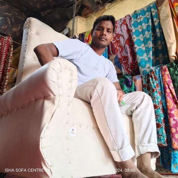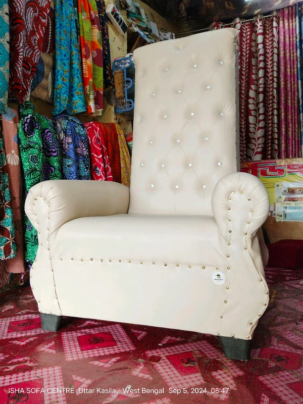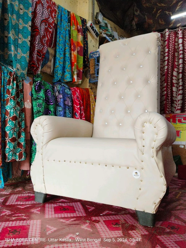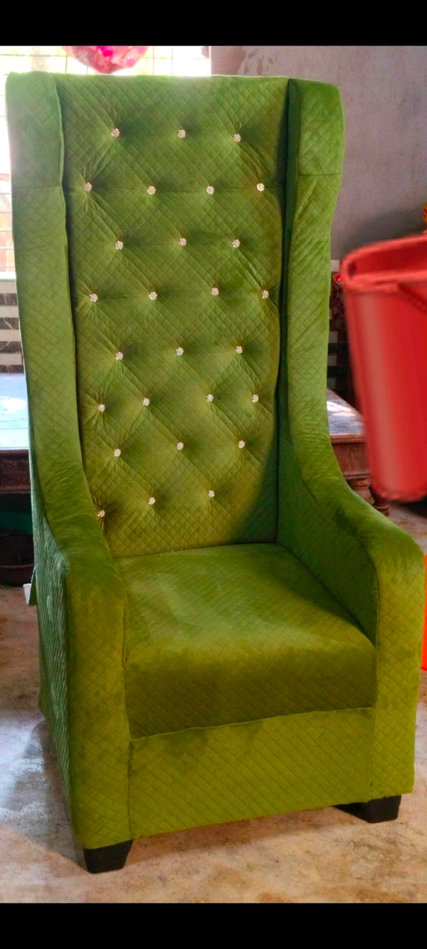 This product features a solid wood frame with metal legs and velvet cushioning. Its dimensions are 30 inch in length and 30 inch in width.